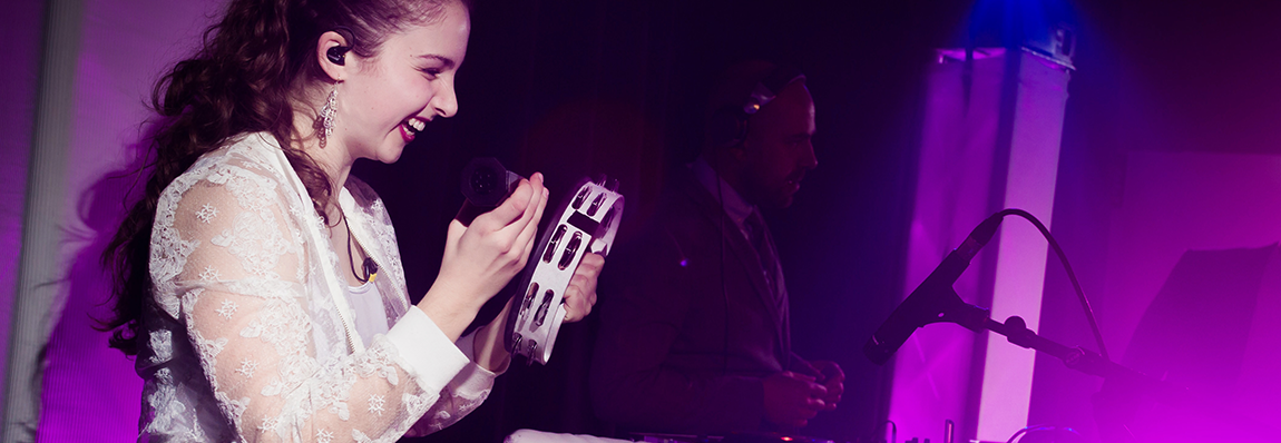 Het enthousiasme spat er vanaf! Een erg energieke combinatie op de beats van de DJ. Onze percussioniste speelt op verschillende (mobiele) trommels en heeft hierdoor een super interactie met het publiek.